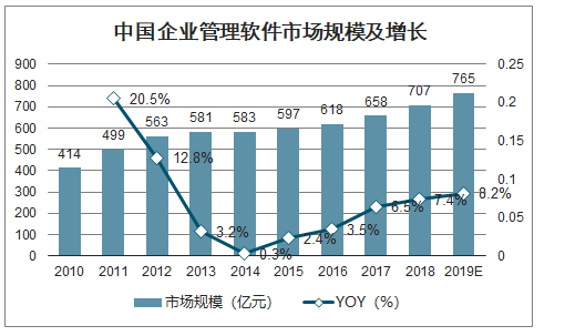 中國(guó)企業管理軟件市場規模及增長(cháng)
