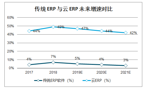 智研咨詢發(fā)布的《2020-2026年中國(guó)ERP軟件行業市場發(fā)展規模及投資前景趨勢報告》數據顯示:預計2021年整體ERP市場規模超過(guò)35億美元,雲ERP市場規模複合增速接近爲傳統ERP的10倍。未來四年我國(guó)傳統ERP軟件增長(cháng)維持在7%以内,雲ERP增速保持在40%以上的高增速增長(cháng),後(hòu)者複合增速接近爲前者的10倍。預計2021年我國(guó)傳統ERP與雲ERP市場規模持平,整體行業市場規模超過(guò)35億美元。